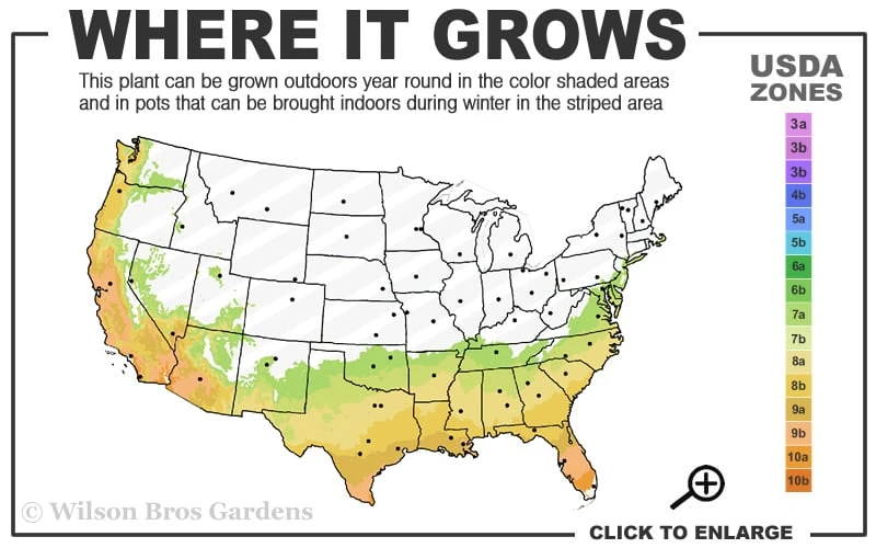 USDA Plant Hardiness Zones: 7a to 10a (6?) Find Your Zone